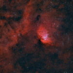 Dieser tulpenförmige Emissionsnebel im Sternbild Schwan ist ein klassisches Sternenentstehungsgebiet. Die Entfernung zur Erde beträgt ca. 7000 Lichtjahre.