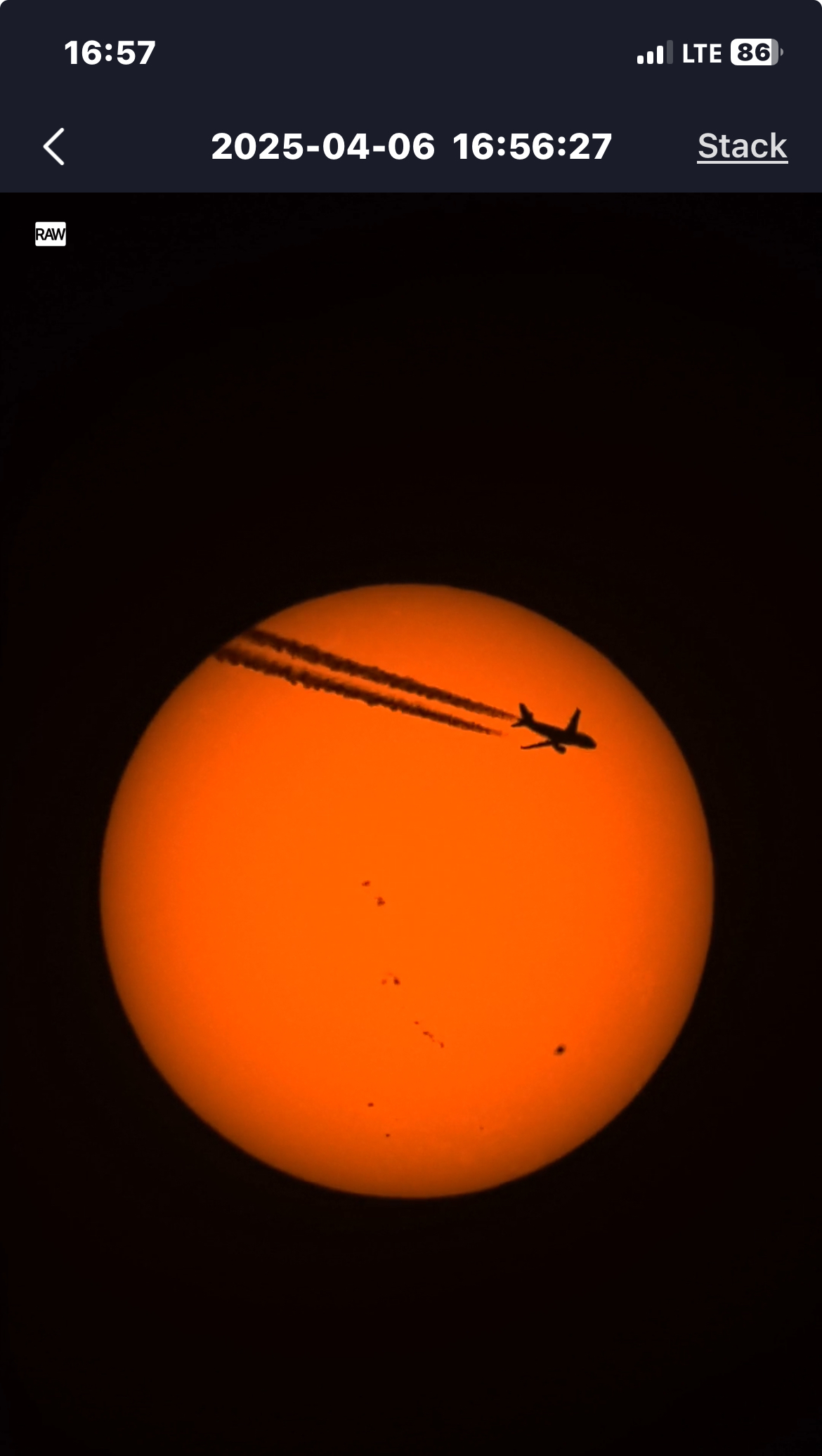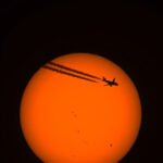 - Flugzeug vor Sonnescheibe
